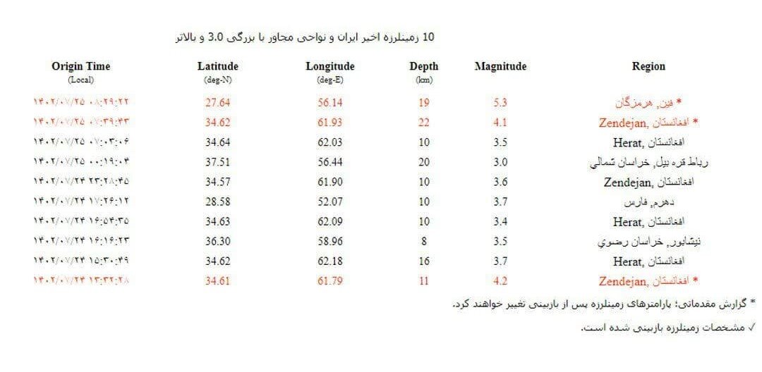 به گزارش ایراسین، بر اساس اعلام مرکز لرزه‌نگاری کشور، زمین‌لرزه ۵.۳ ریشتری، ساعت ۸:۲۹ امروز _سه‌شنبه بیست‌وپنجم مهرماه_ منطقه فین در استان هرمزگان را لرزاند. این زلزله در عمق ۱۹ کیلومتری زمین رخ داده است.