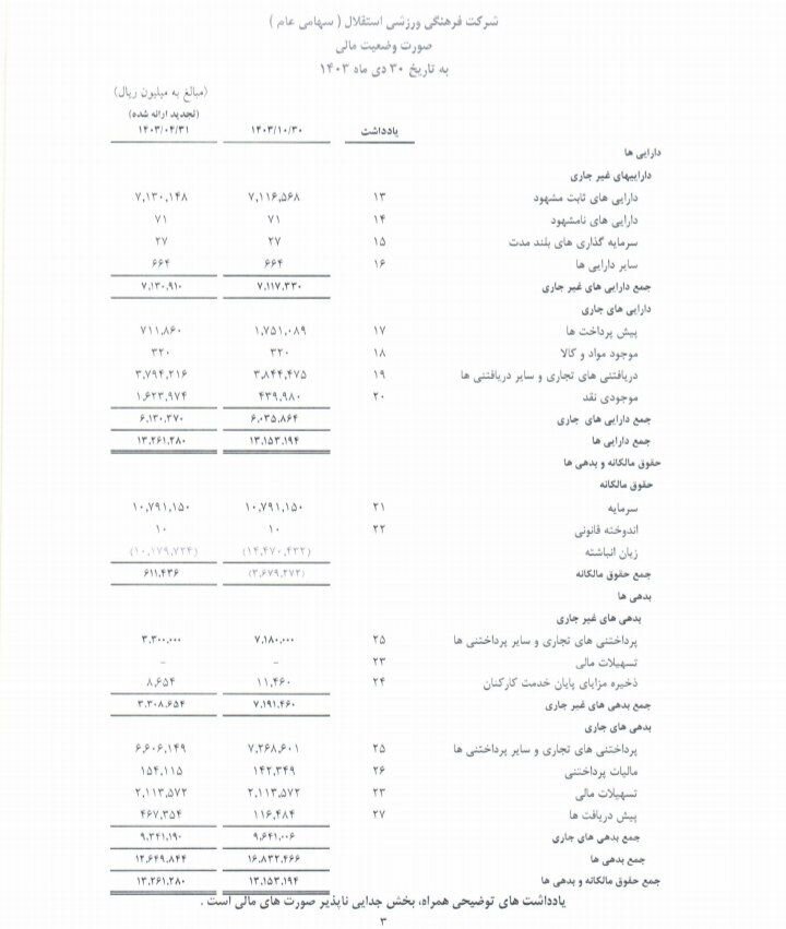 گروه پتروشیمی خلیج فارس از ۵ اردیبهشت ۱۴۰۳ سکاندار مدیریت باشگاه استقلال شده است. از آن زمان تاکنون، تیم فوتبال استقلال ۶ مربی مختلف را تجربه کرده و در حال حاضر، با هدایت بوژوویچ و با کسب ۲۸ امتیاز، در جایگاه دوازدهم جدول لیگ برتر قرار دارد. جزئیات گزارش مالی جدید باشگاه در فایل پیوست قابل مشاهده است.