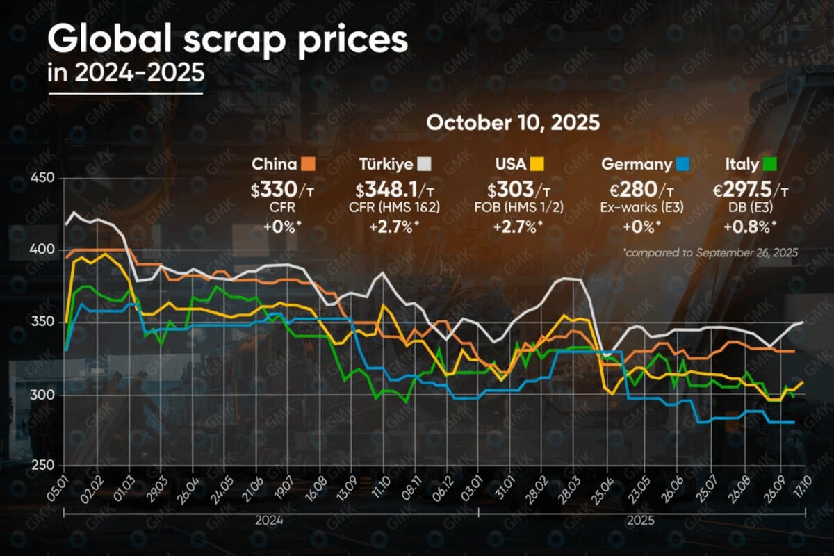 قیمت قراضه در ترکیه از ابتدای ماه اکتبر (۲۶ سپتامبر تا ۱۰ اکتبر) با رشد ۲.۷ درصدی به ۳۴۸.۱ دلار در هر تن (CFR، نوع HMS 1&2 80:20) رسید که بالاترین سطح از ابتدای آوریل محسوب میشود. پیشبینیها حاکی از ادامه رشد تا ۳۵۰ دلار در پایان هفته است.
