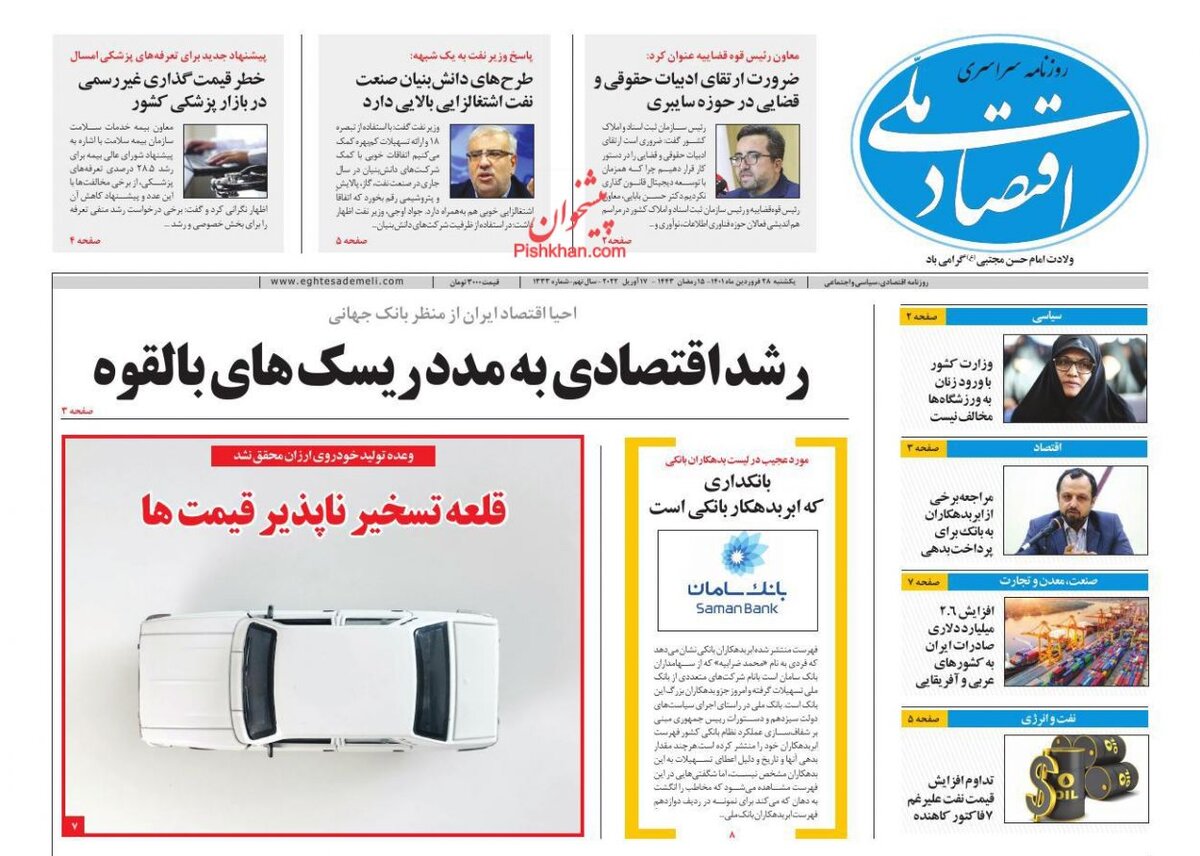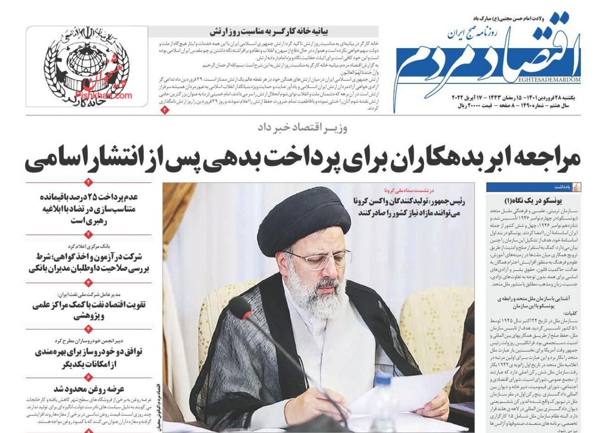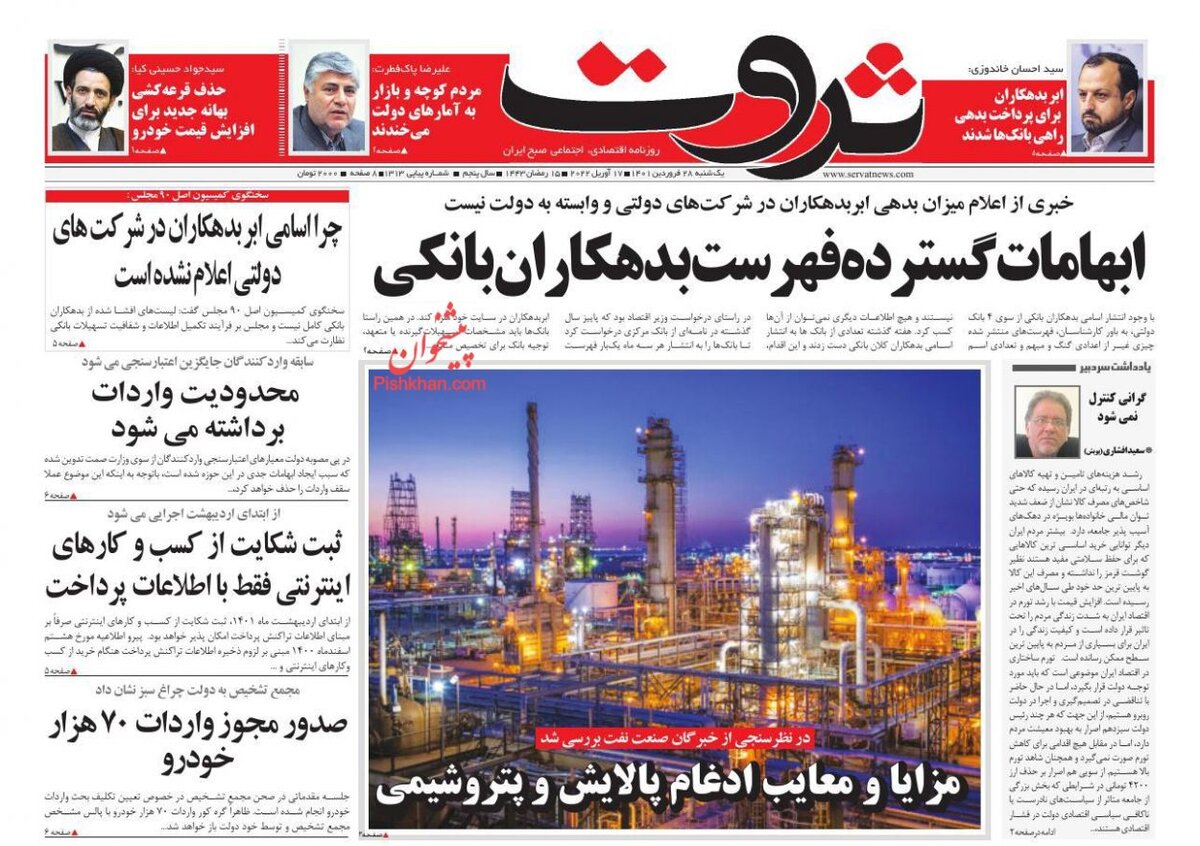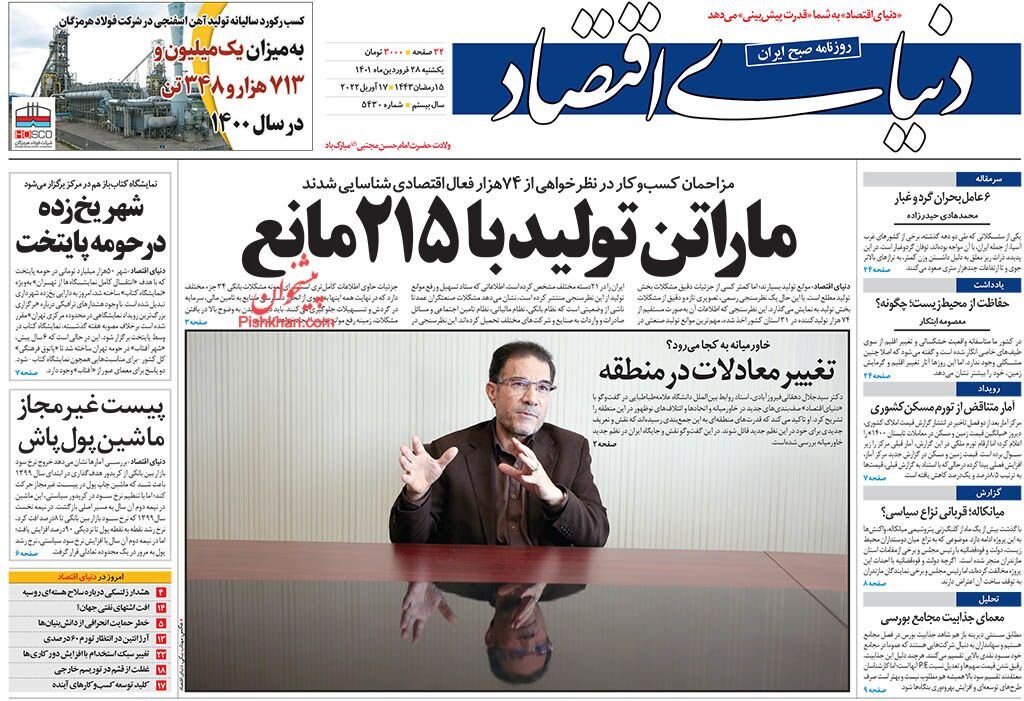 صفحه نخست روزنامههای اقتصادی یکشنبه ۲۸ فروردین ۱۴۰۱