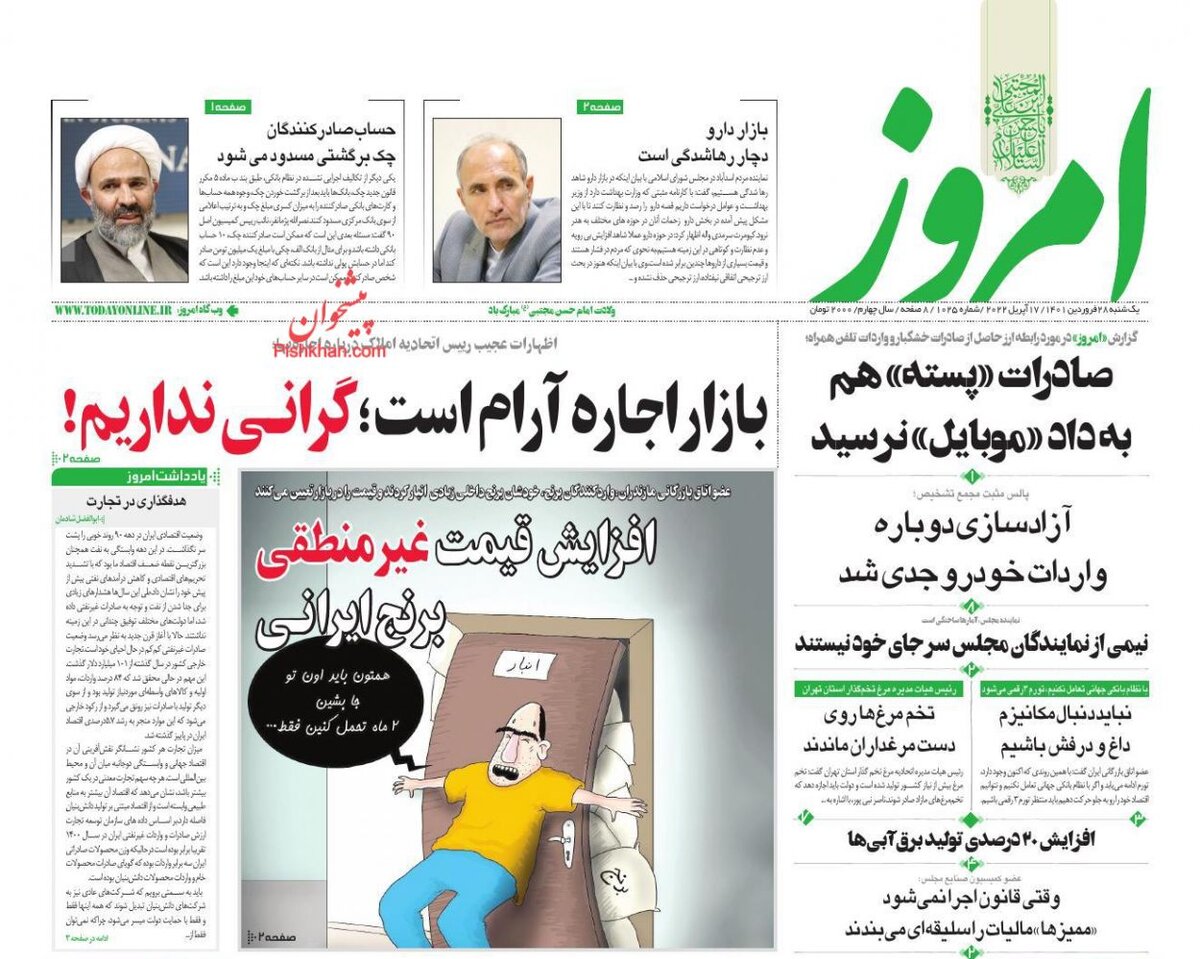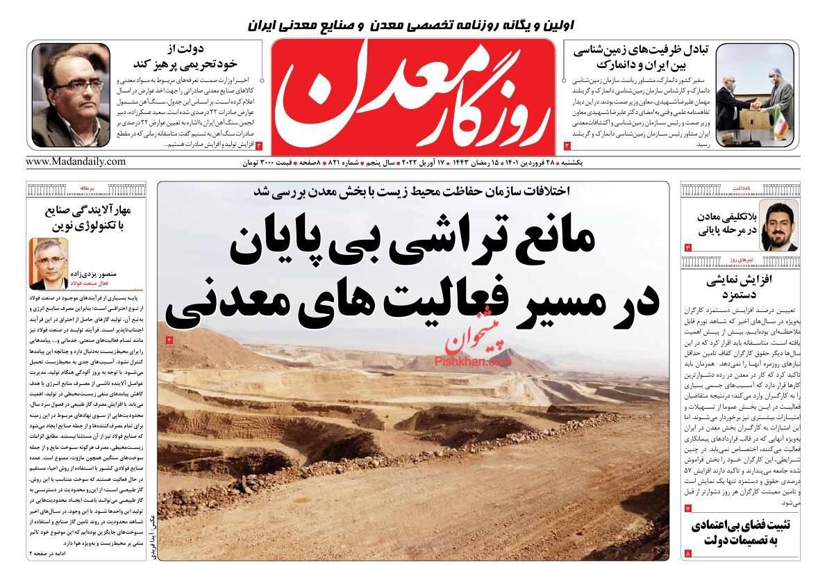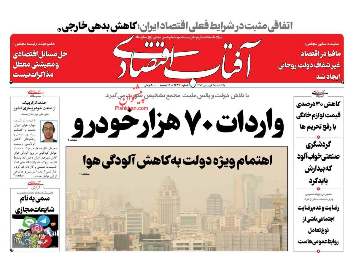 صفحه نخست روزنامههای اقتصادی یکشنبه ۲۸ فروردین ۱۴۰۱