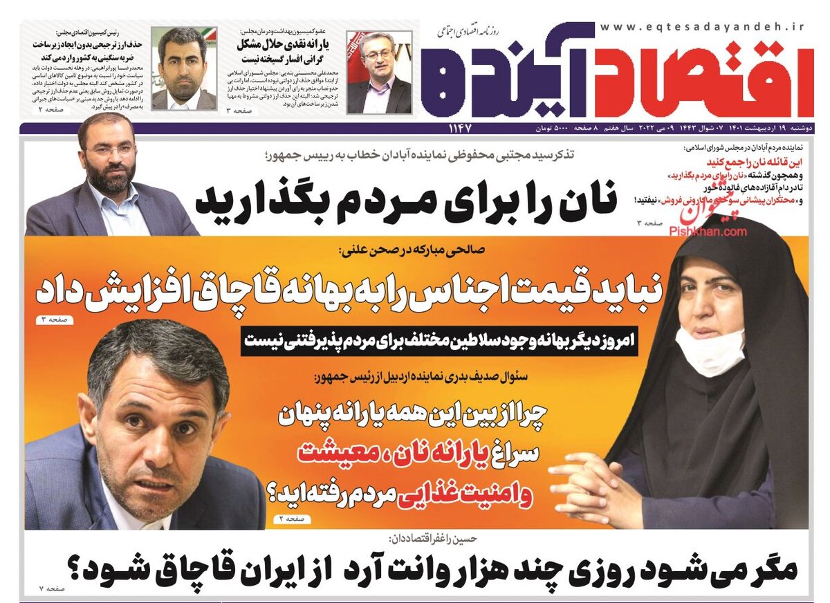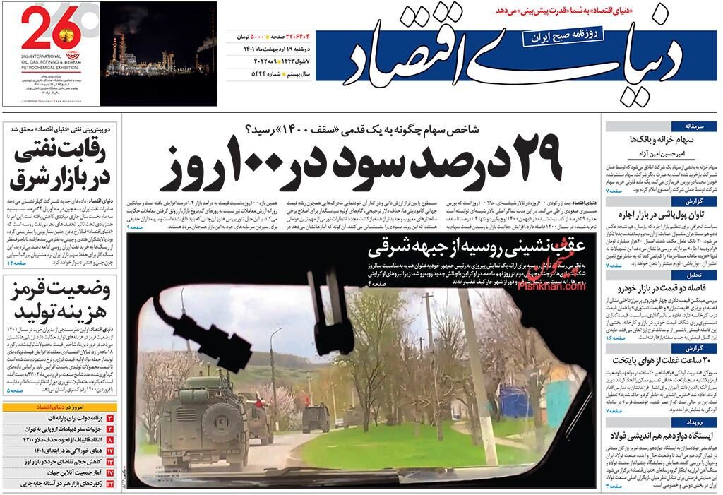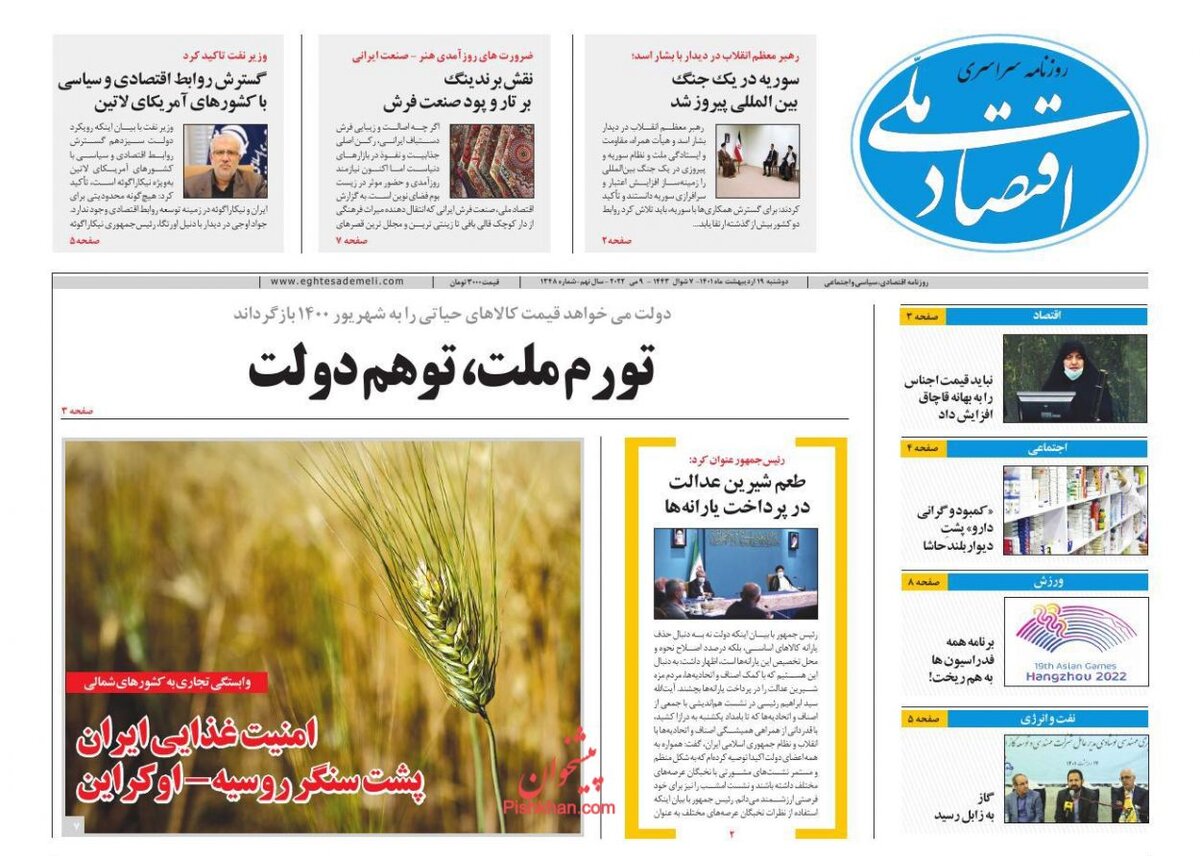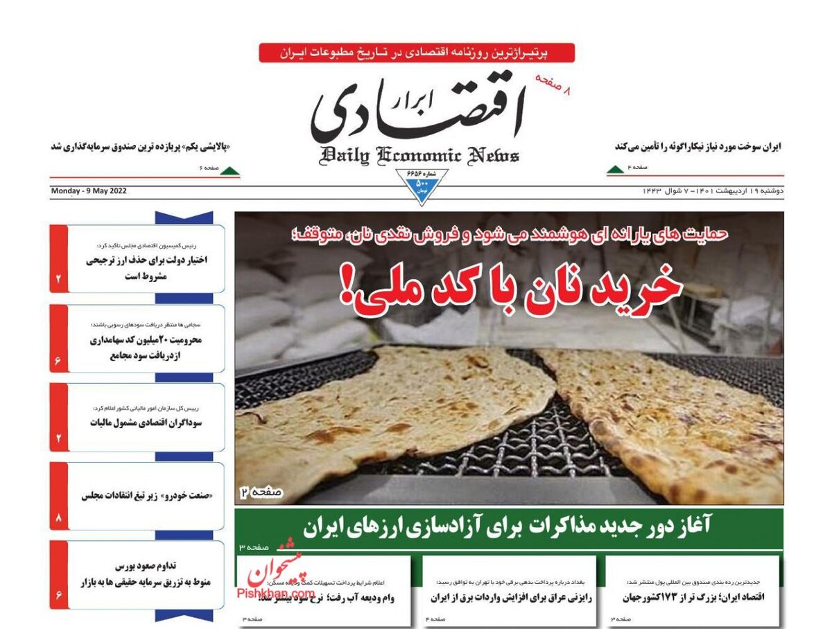صفحه نخست روزنامههای اقتصادی دوشنبه ۱۹ اردیبهشت ۱۴۰۱