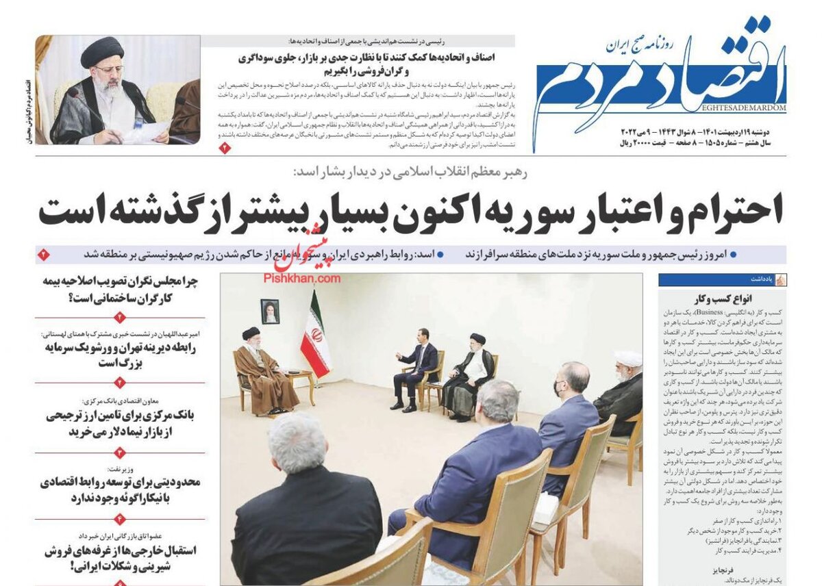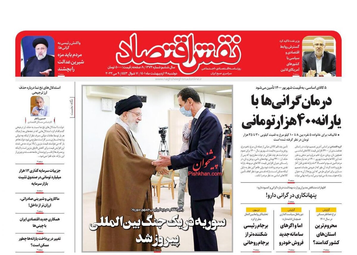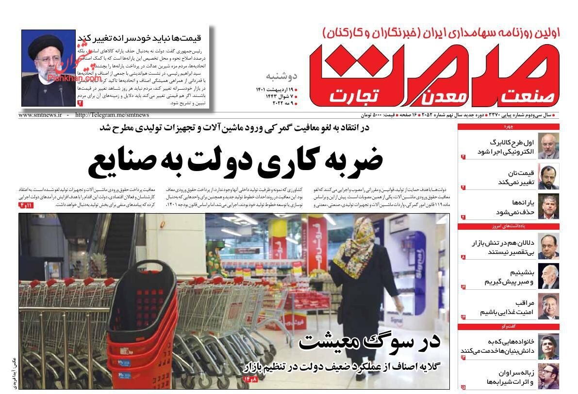 صفحه نخست روزنامههای اقتصادی دوشنبه ۱۹ اردیبهشت ۱۴۰۱