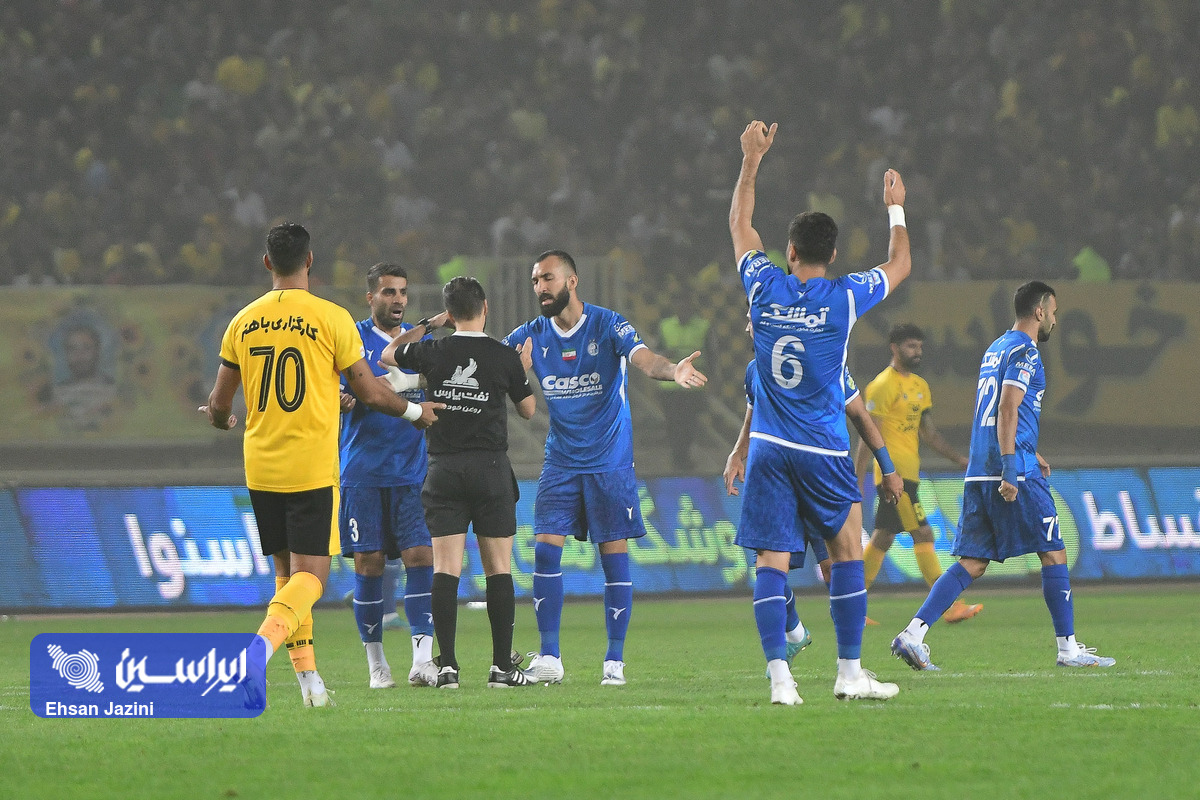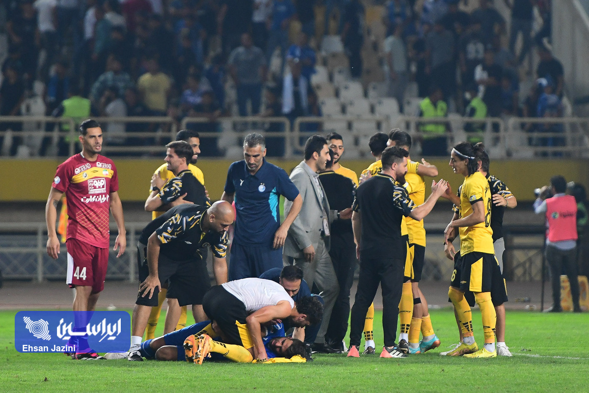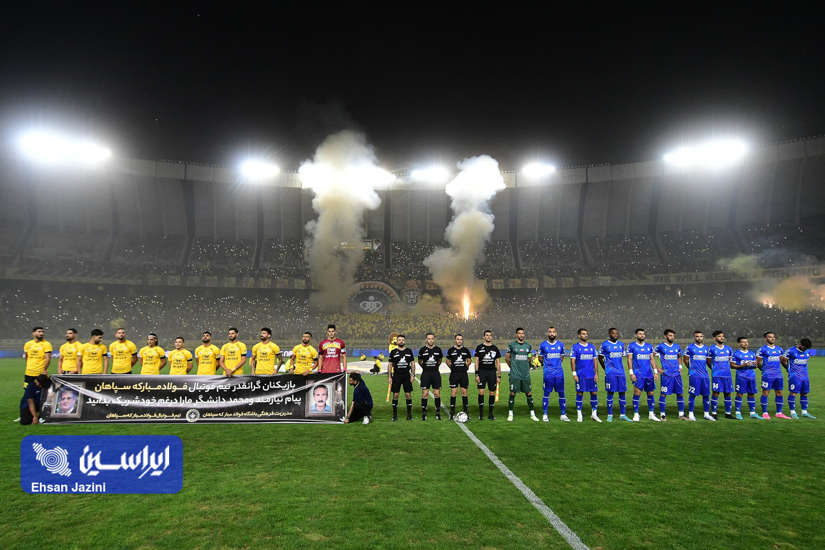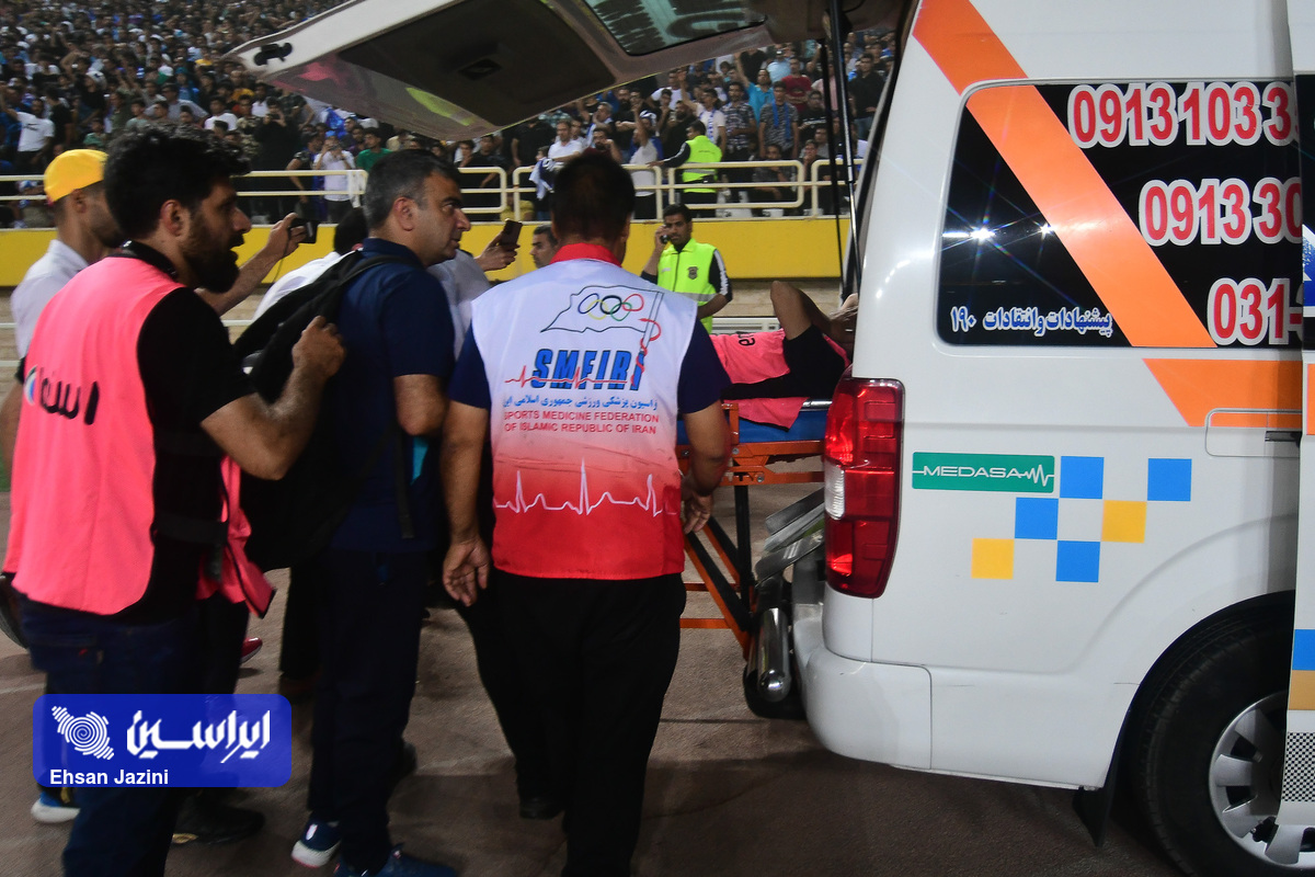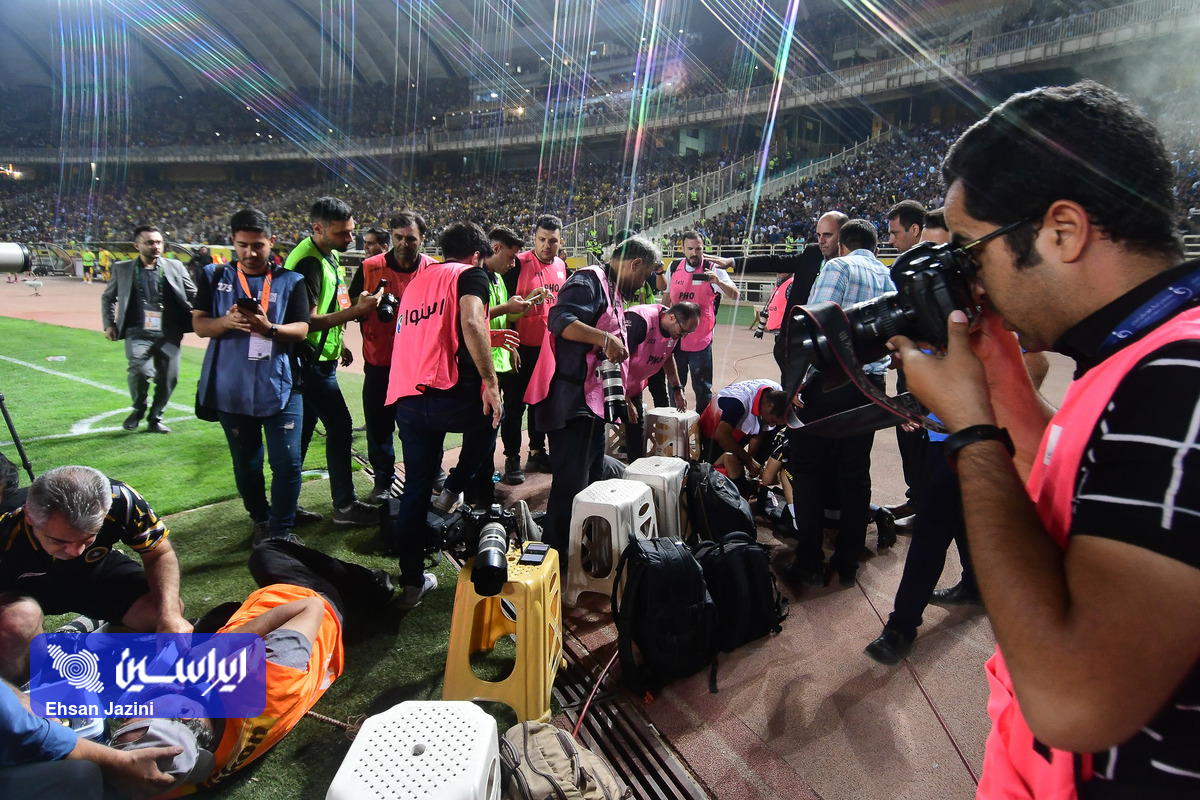 تیم سپاهان در دیداری از هفته سوم لیگ برتر ایران مقابل استقلال به برتری یک بر صفر دست پیدا کرد. در نیمه نخست این دیدار نارنجکی از سمت سکوهای هواداران استقلال به پیست ورزشگاه نقش جهان پرتاب شد که باعث شد یکی از عکاسان مصدوم شود. (عکاس: احسان جزینی)