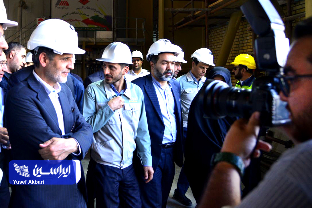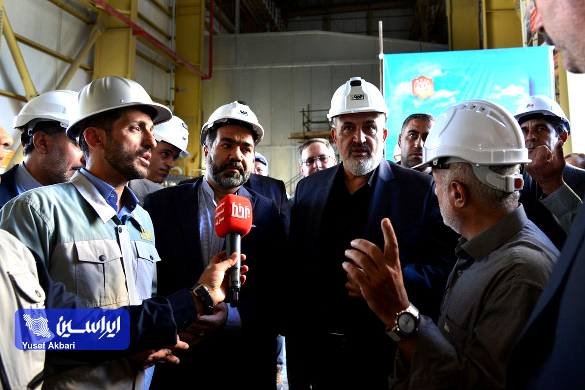 عباس علی‌آبادی وزیر صمت به همراه سید رضا مرتضوی استاندار اصفهان امروز هفتم شهریورماه ۱۴۰۲ با حضور در شرکت فولاد مبارکه از ناحیه نورد گرم، ماشین ریخته‌گری مداوم شماره ۵، ابر پروژه نورد گرم ۲ و نیروگاه ۹۱۴ مگاواتی سیکل ترکیبی این مجموعه بازدید کرد و پروژه توسعه پارک‌های انباشت و برداشت این شرکت توسط او افتتاح شد. (عکاس: یوسف اکبری)
