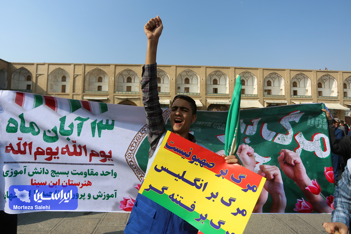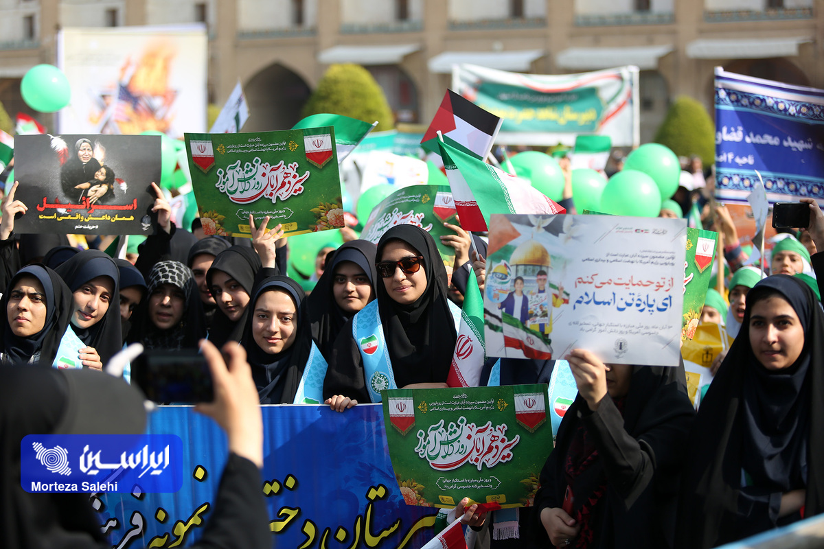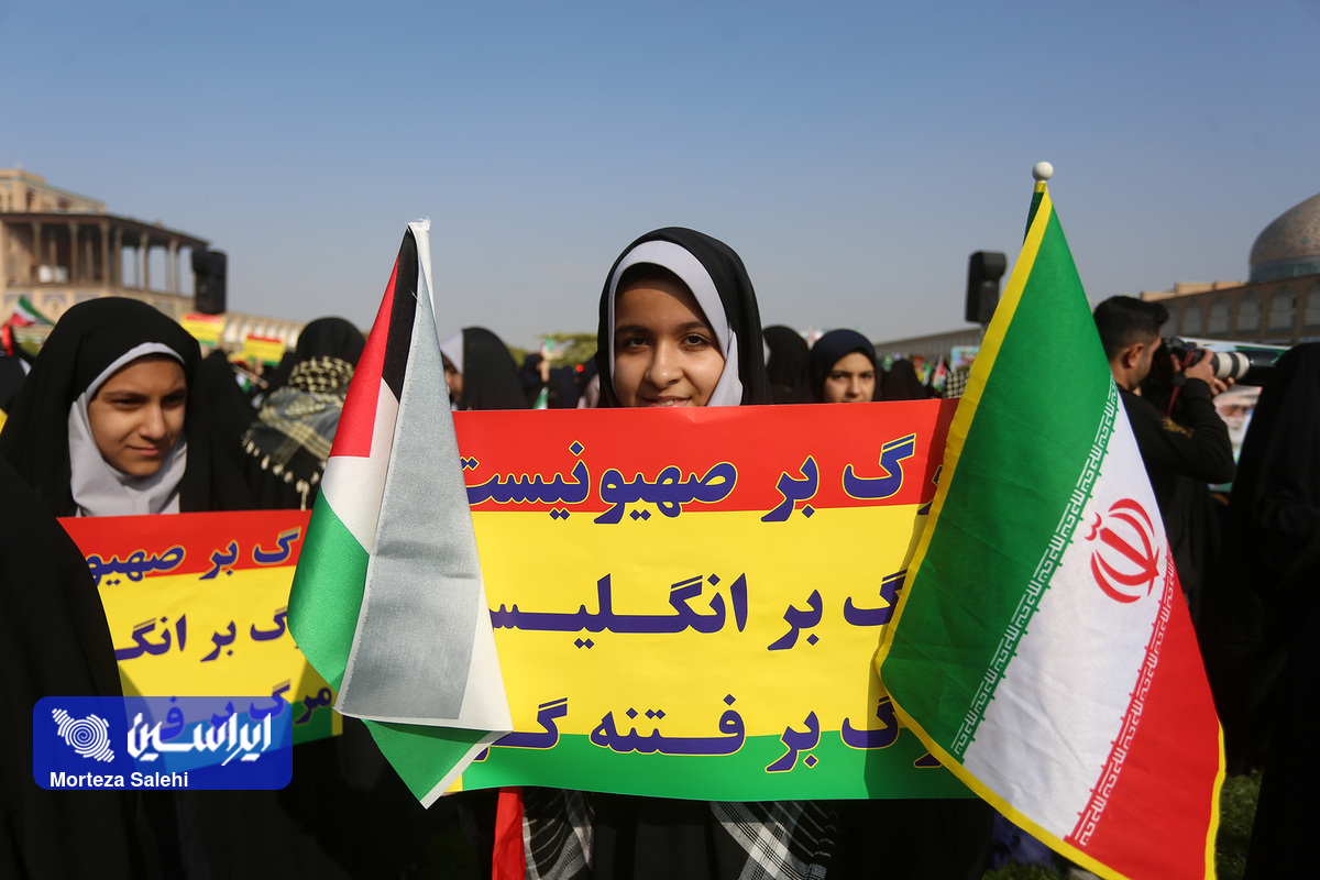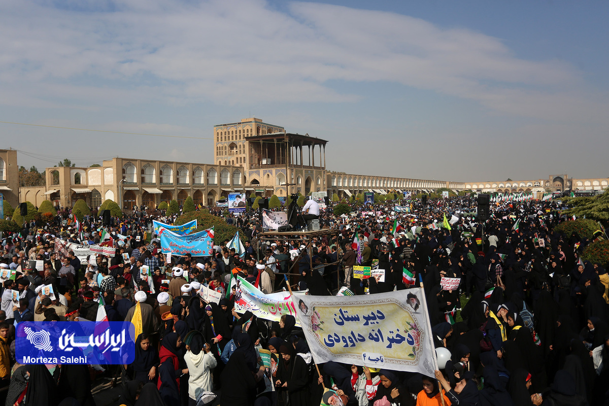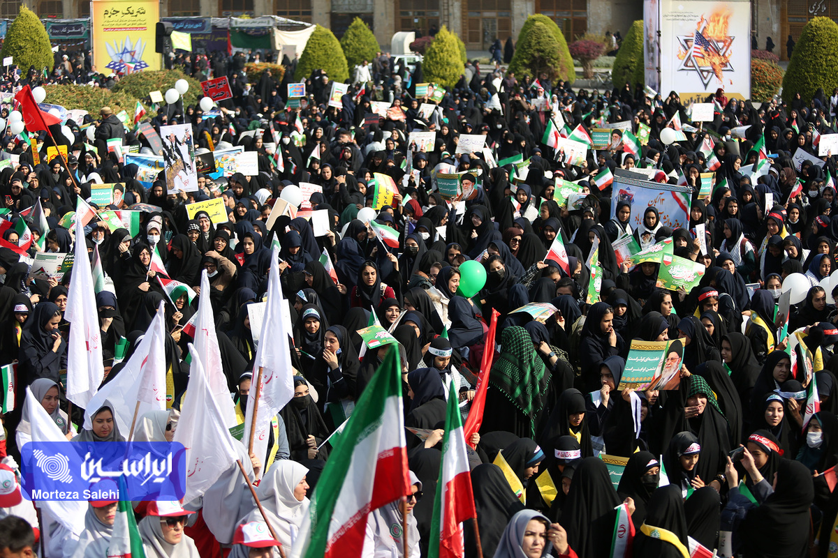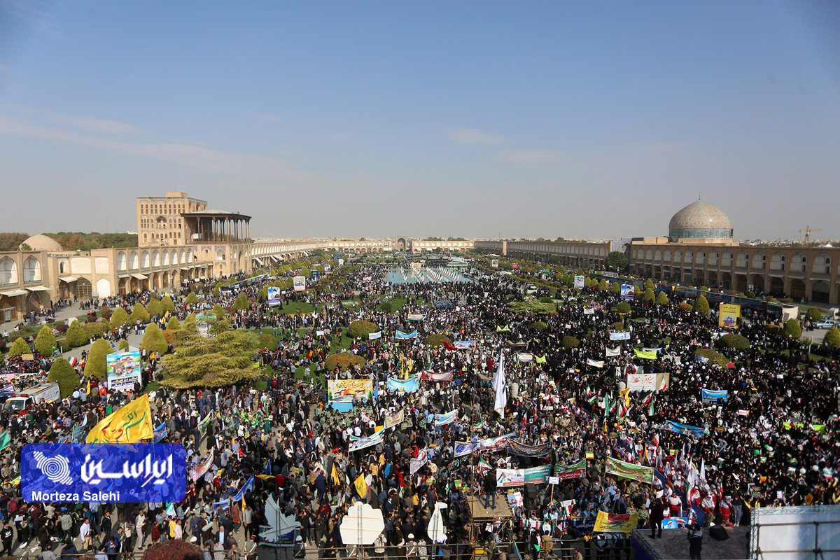 مراسم یوم الله سیزده آبان از ساعت ۹ صبح امروز در میدان نقش جهان با حضور پرشور مردم انقلابی اصفهان در محکومیت جنایات رژیم کودککش و حمایت از مردم مظلوم فلسطین برگزار شد. (عکاس: مرتضی صالحی)
