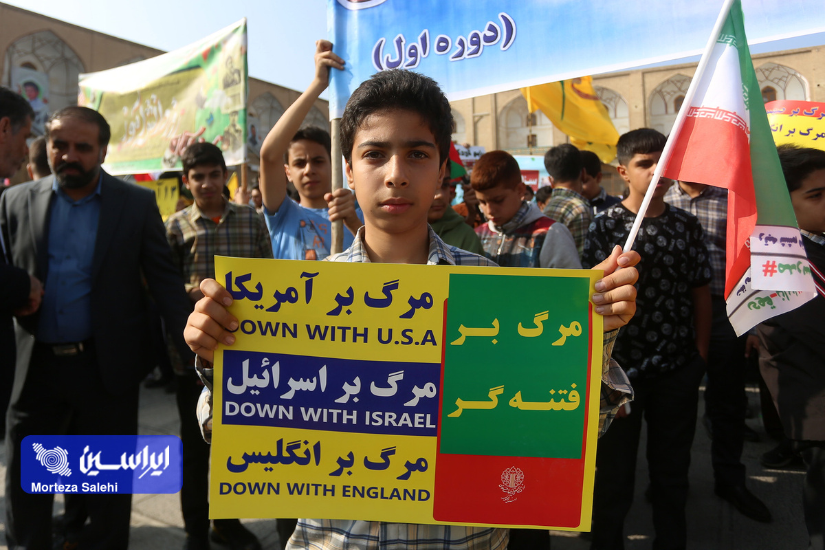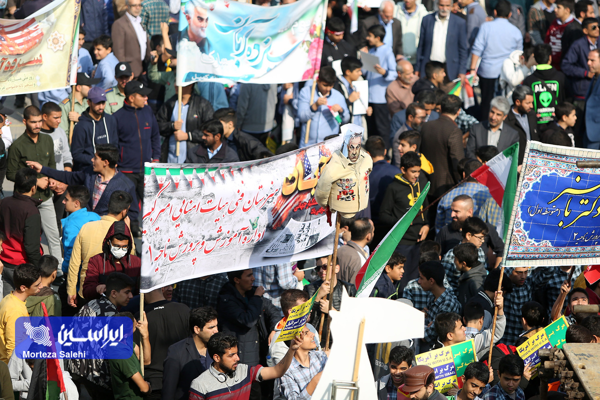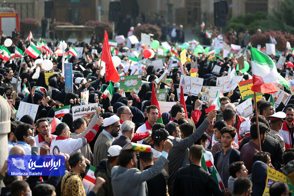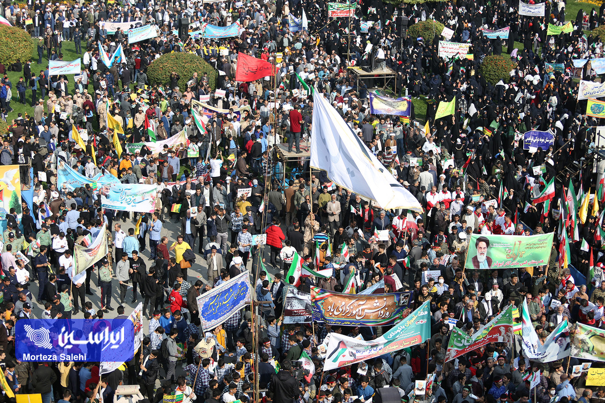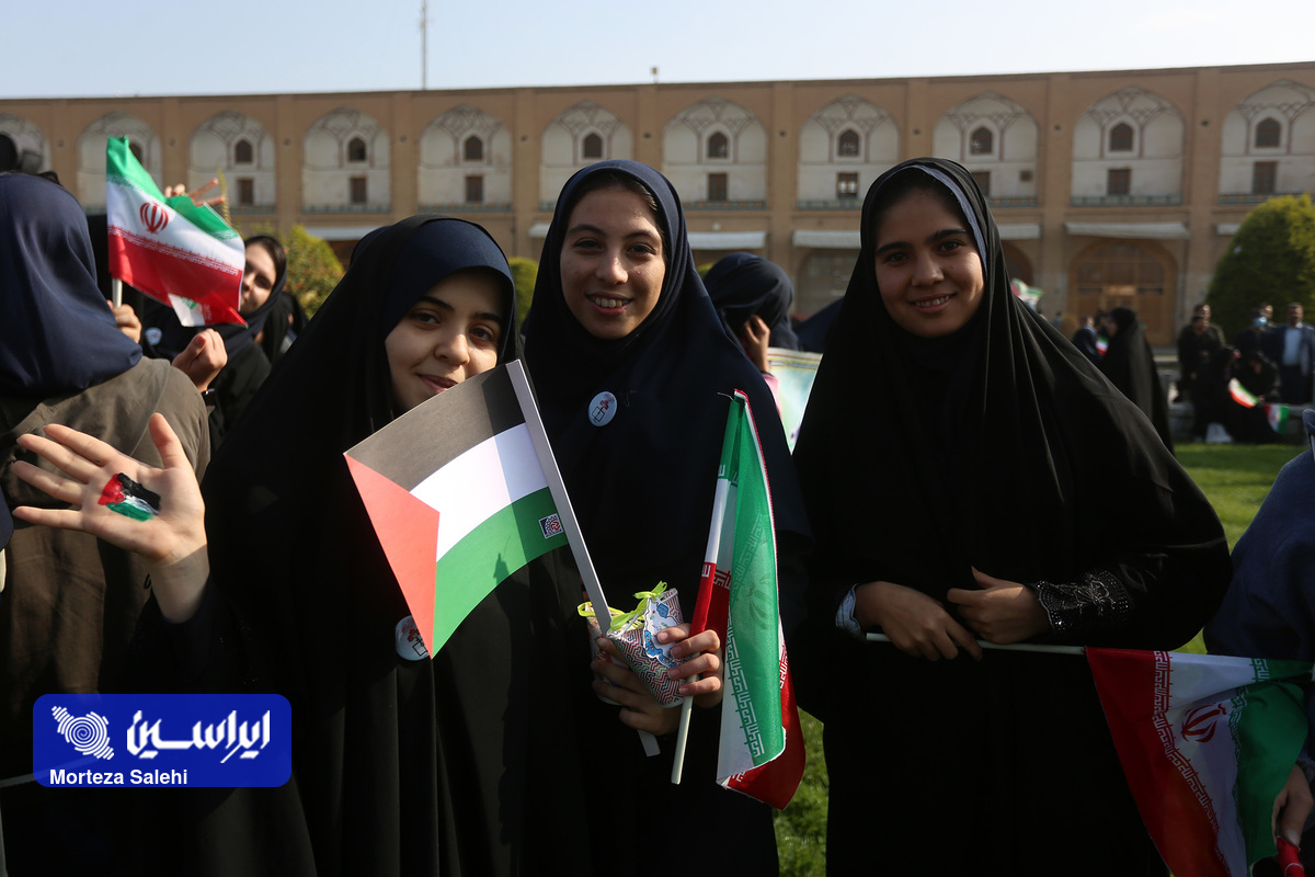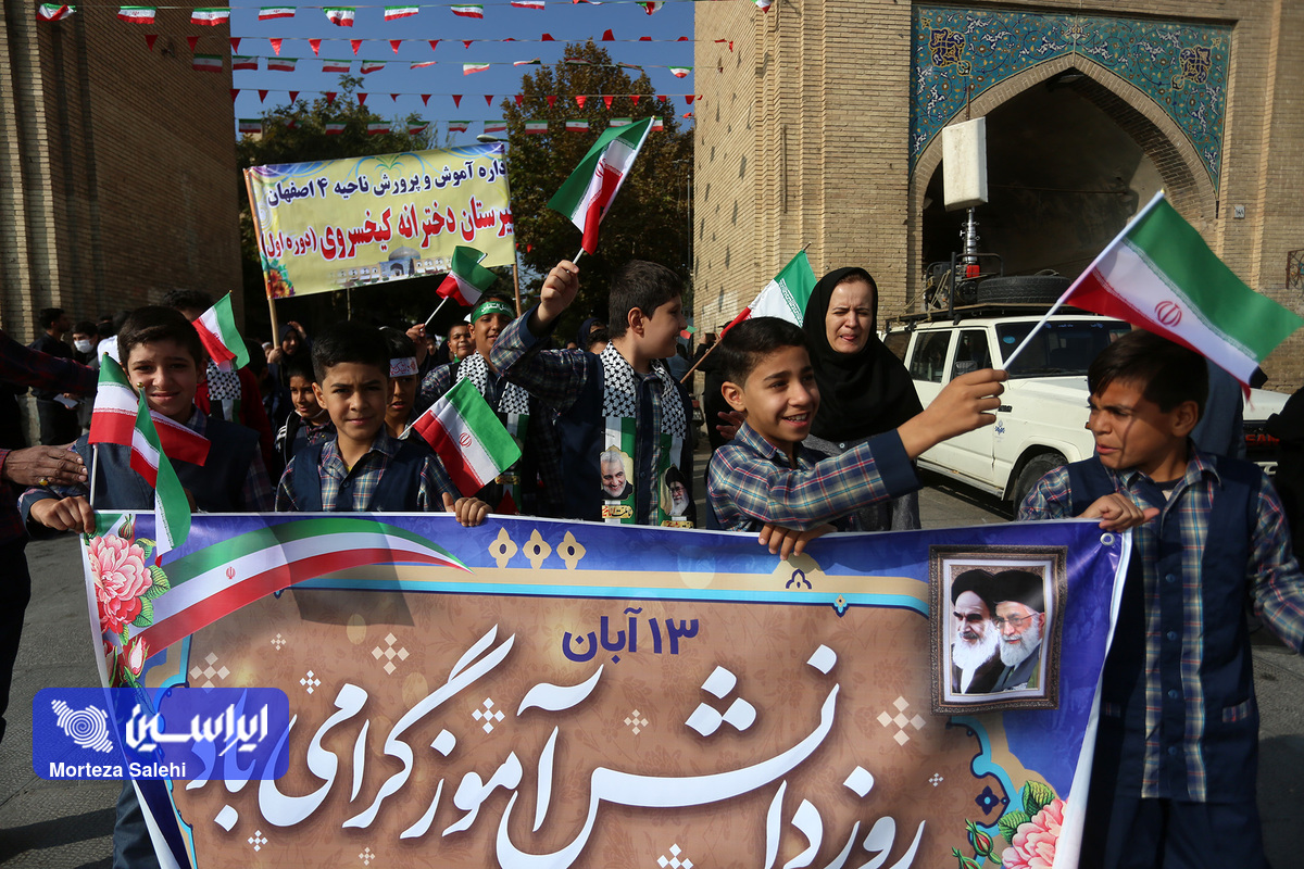 مراسم یوم الله سیزده آبان از ساعت ۹ صبح امروز در میدان نقش جهان با حضور پرشور مردم انقلابی اصفهان در محکومیت جنایات رژیم کودککش و حمایت از مردم مظلوم فلسطین برگزار شد. (عکاس: مرتضی صالحی)