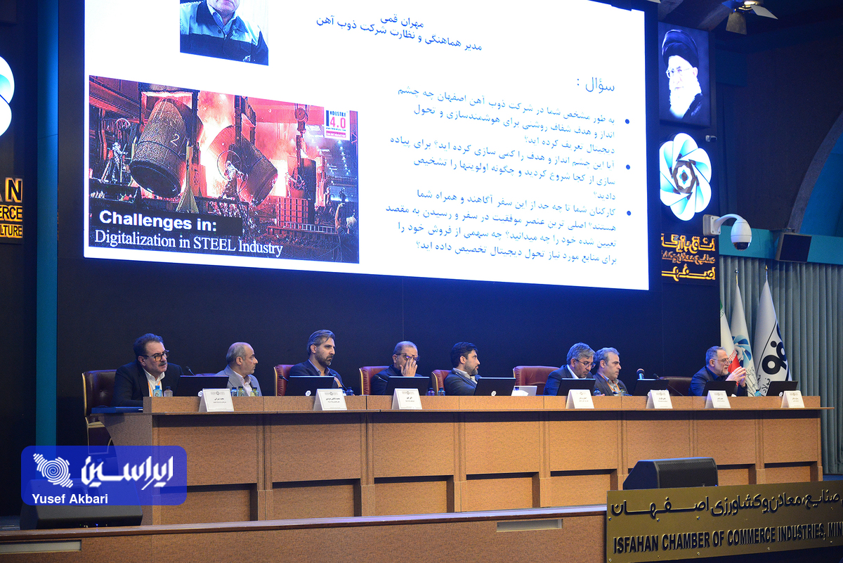 همایش «توسعه متوازن و پایدار صنعت آهن و فولاد ایران» چهارشنبه ۷ شهریورماه ۱۴۰۳ در اتاق بازرگانی، صنایع، معادن و کشاورزی اصفهان با چهار پنل تخصصی برگزار شد. چهارمین پنل تخصصی این رویداد «نقش ارتقا تکنولوژی و هوشمندسازی در توسعه پایدار و متوازن صنعت آهن و فولاد ایران» بود.(عکاس: یوسف اکبری)
