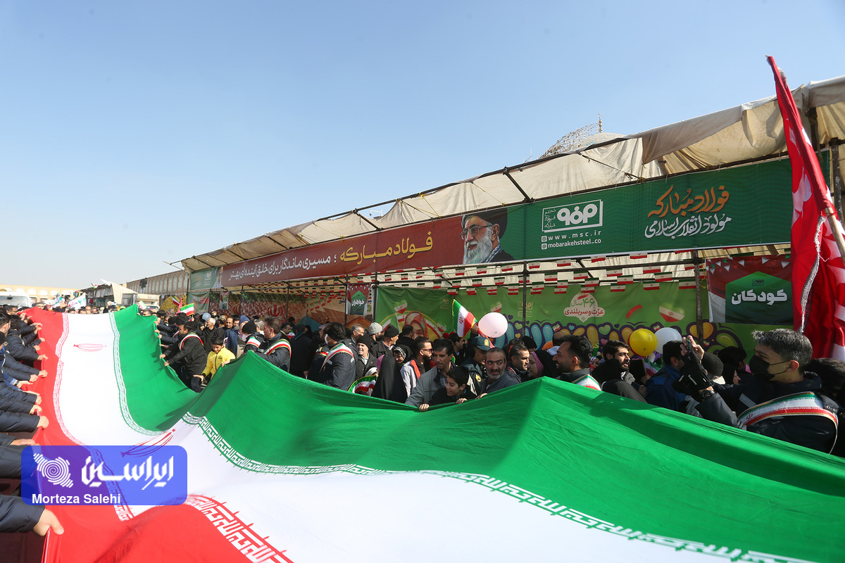 مردم مومن و انقلابی اصفهان همزمان با سراسر کشور با حضور گسترده در راهپیمایی ۲۲ بهمن شرکت کردند. شرکت فولاد مبارکه نیز به عنوان مولود انقلاب اسلامی علاوه بر برپایی غرفه در این راهپیمایی حضور حداکثری داشت. (عکاس: مرتضی صالحی)