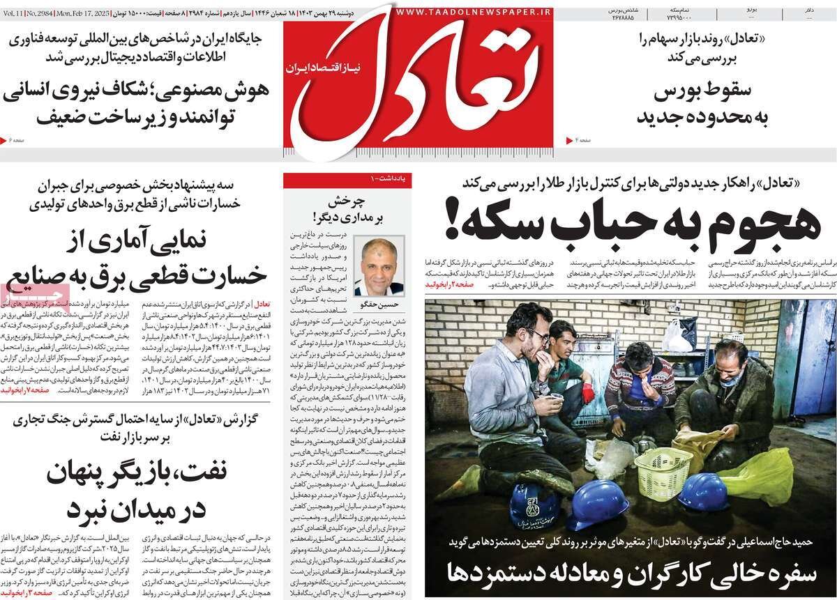 اقتصاد عصمت صادقیان ۲۹ بهمن ۱۴۰۳ - ۰۸:۲۱ کد خبر: 69448 لینک کوتاه دریافت تصاویر صفحه اول اقتصادی روزنامه های ایران دوشنبه ۲۹ بهمن برچسبها روزنامه های اقتصادی تیتر روزنامه اقتصادی امروز عناوین روزنامههای اقتصادی تیتر روزنامه ها