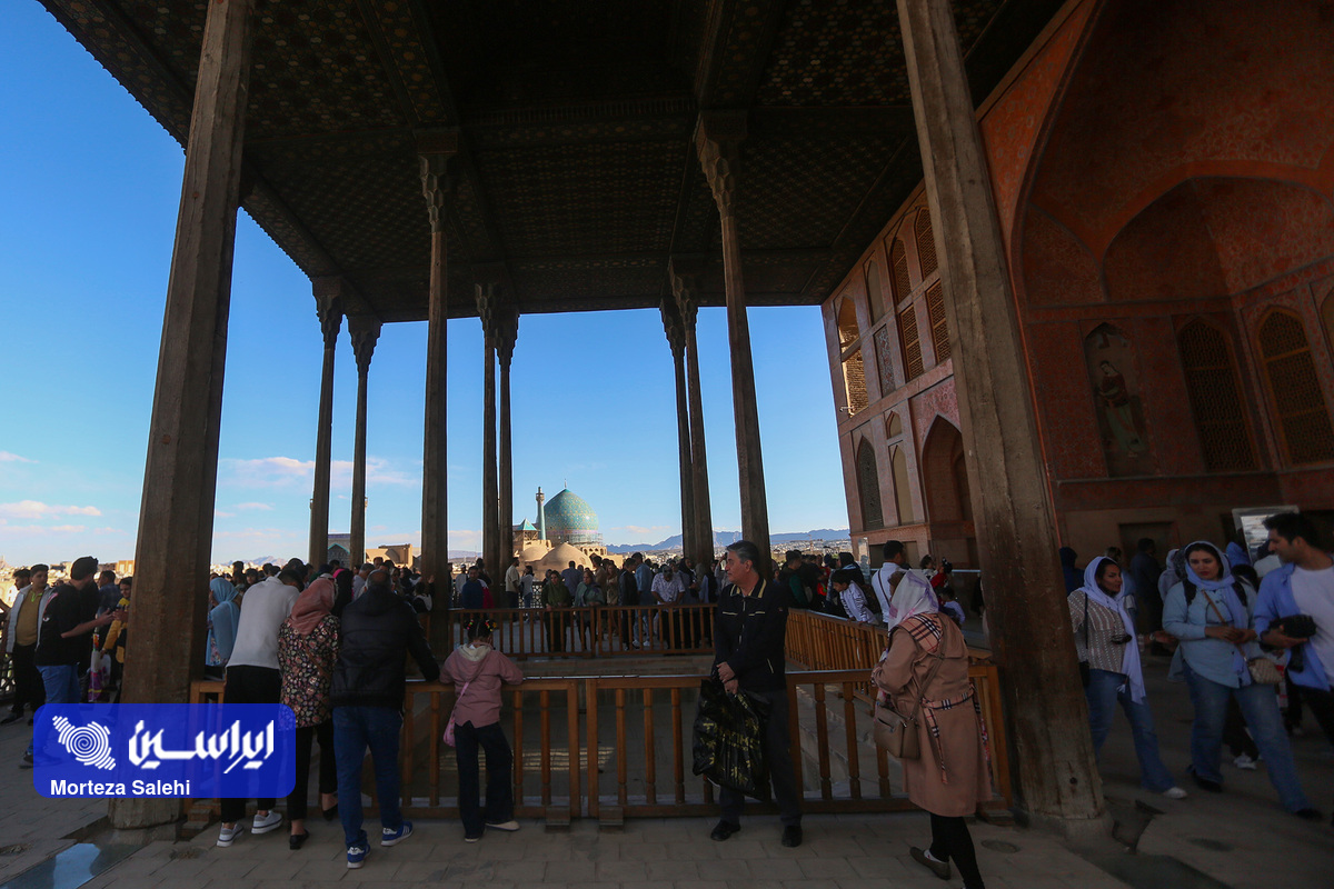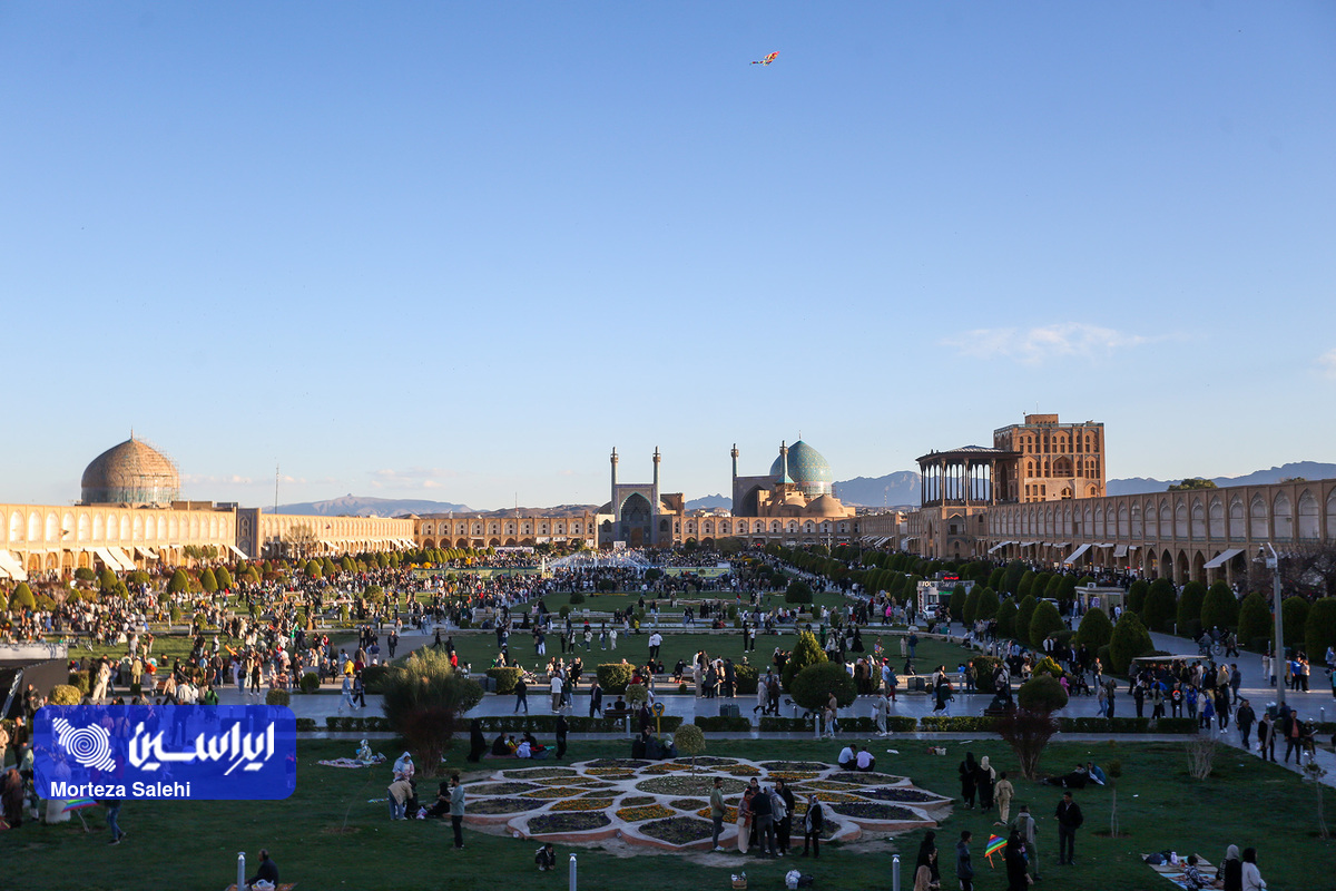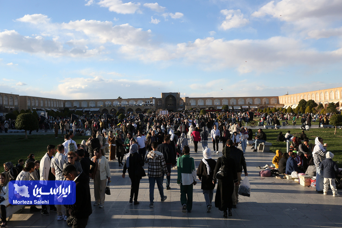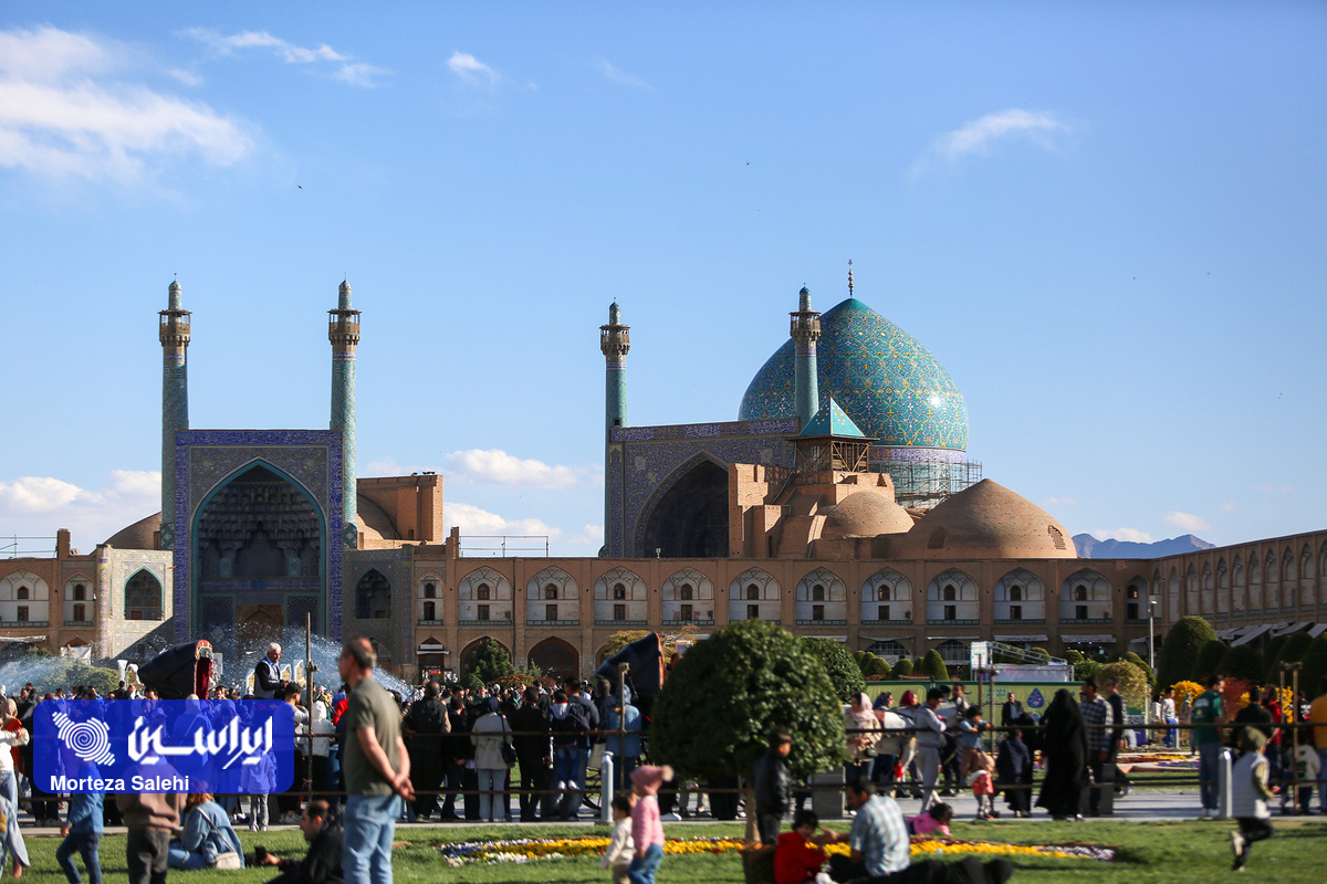 گردشگران نوروزی اصفهان، امسال نیز همچون سالهای گذشته میدان نقش جهان را به عنوان یکی از مراکز اصلی گردشگری انتخاب کردند و هر روز بر حضور انبوه این گردشگران در این میدان تاریخی اضافه میشود. (عکاس: مرتضی صالحی)