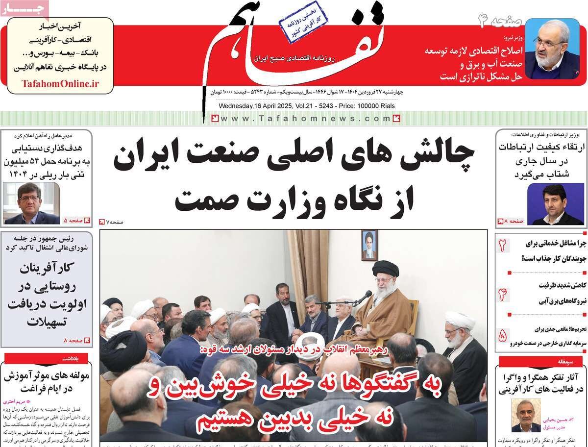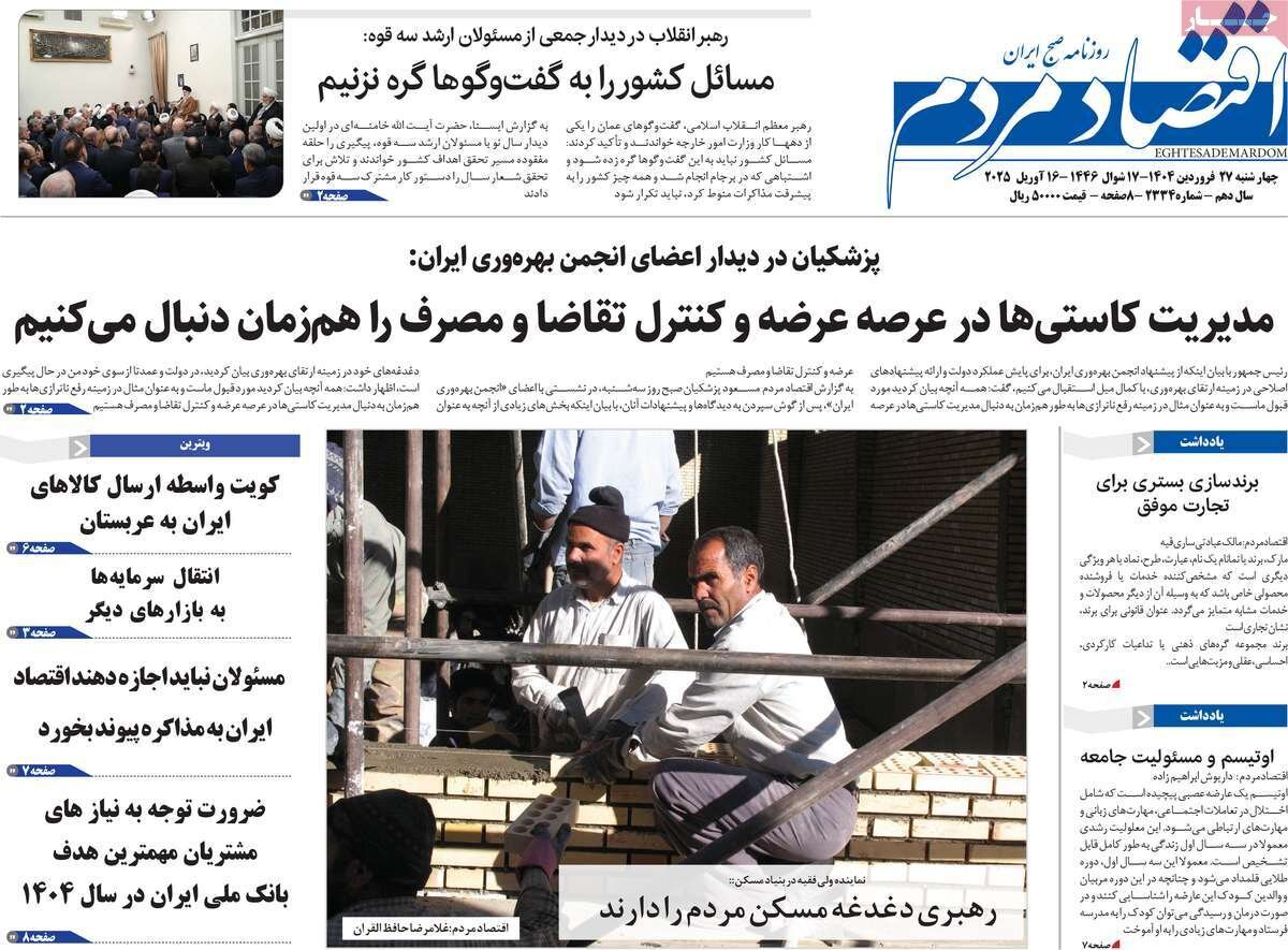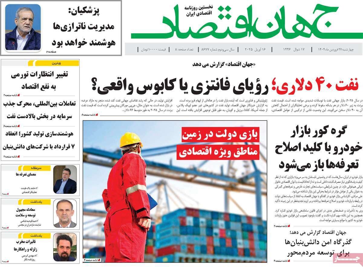 اقتصاد عصمت صادقیان ۲۷ فروردین ۱۴۰۴ - ۰۸:۵۱ کد خبر: 72335 لینک کوتاه دریافت تصاویر صفحه اول روزنامه های اقتصادی ایران چهار شنبه ۲۷ فروردین برچسبها روزنامه های اقتصادی تیتر روزنامه اقتصادی امروز عناوین روزنامههای اقتصادی