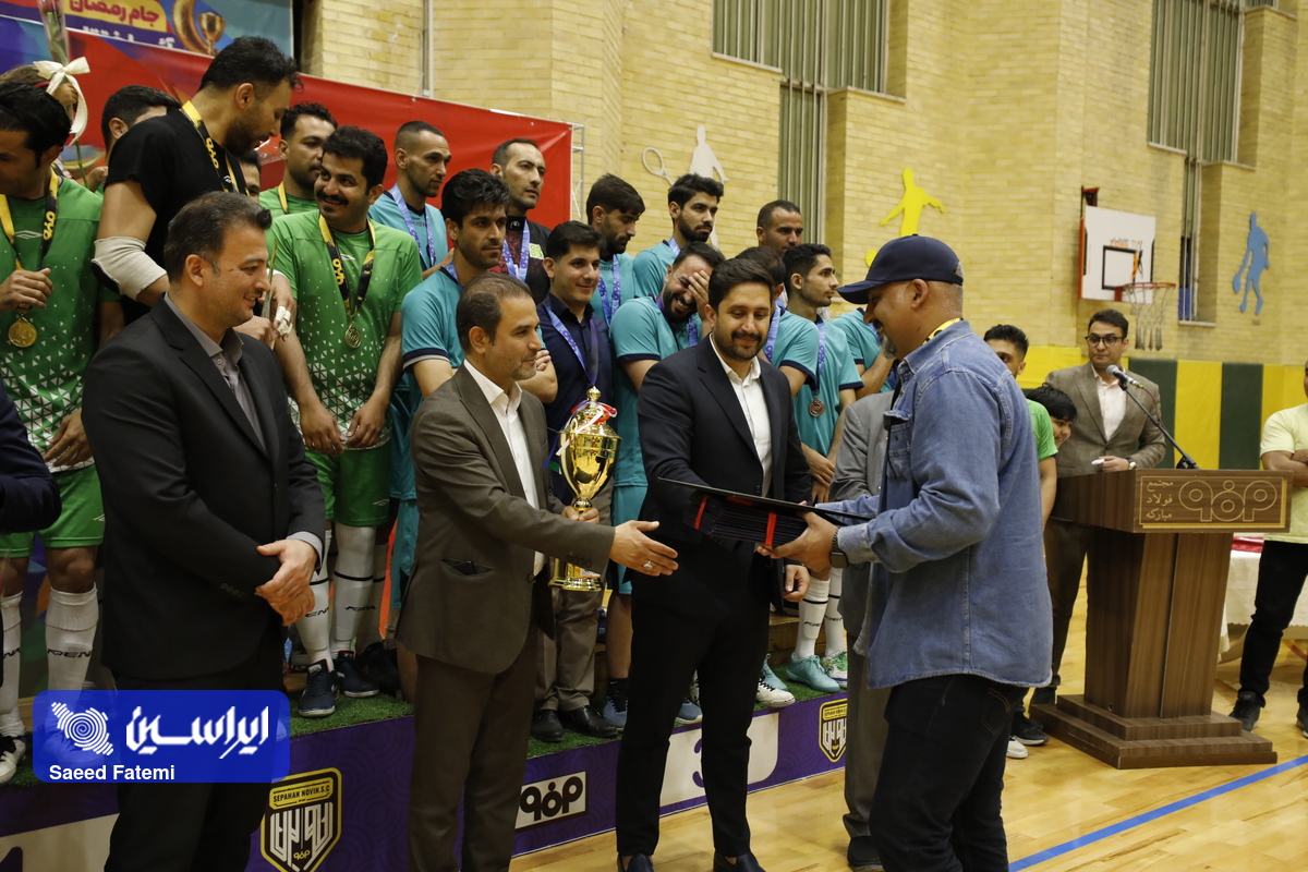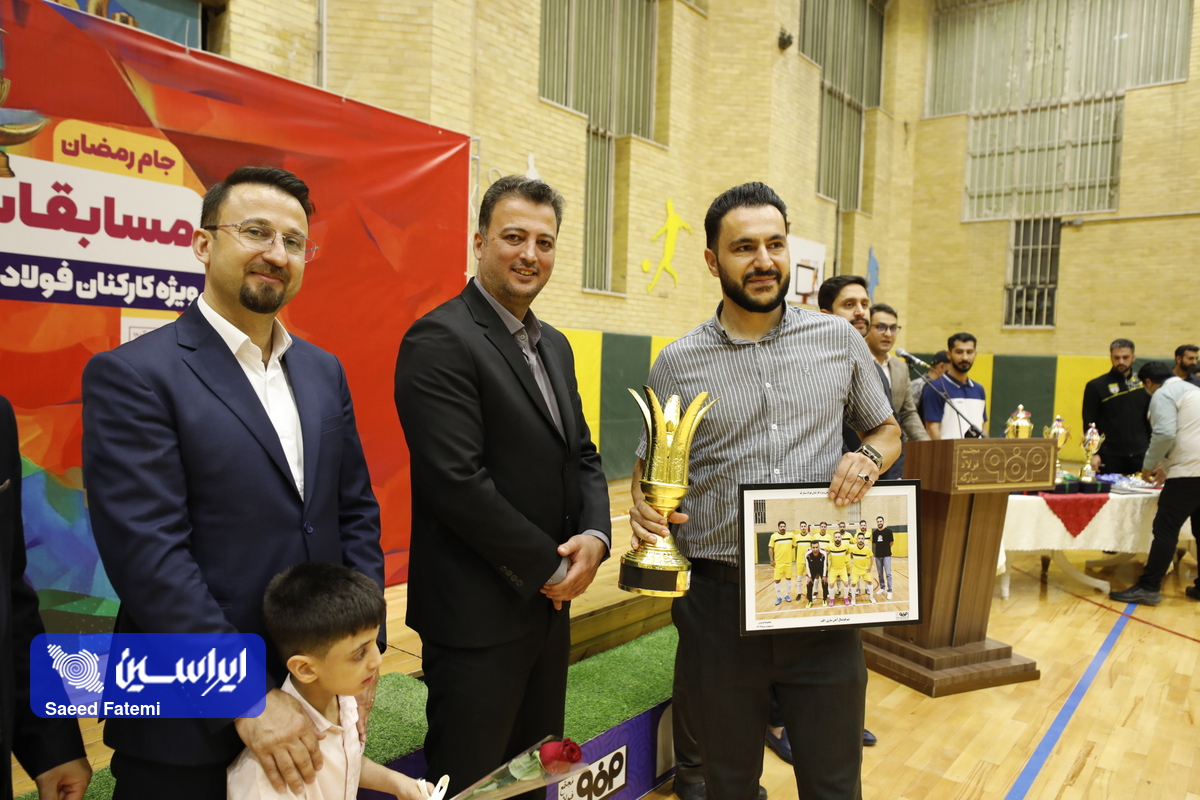 دوشنبه ۱۷ اردیبهشت ۱۴۰۴، سومین دوره مسابقات فوتسال جام رمضان ویژه کارکنان شرکت فولاد مبارکه، با قهرمانی تیم فولادسازی به پایان رسید. (عکاس: سعید فاطمی)